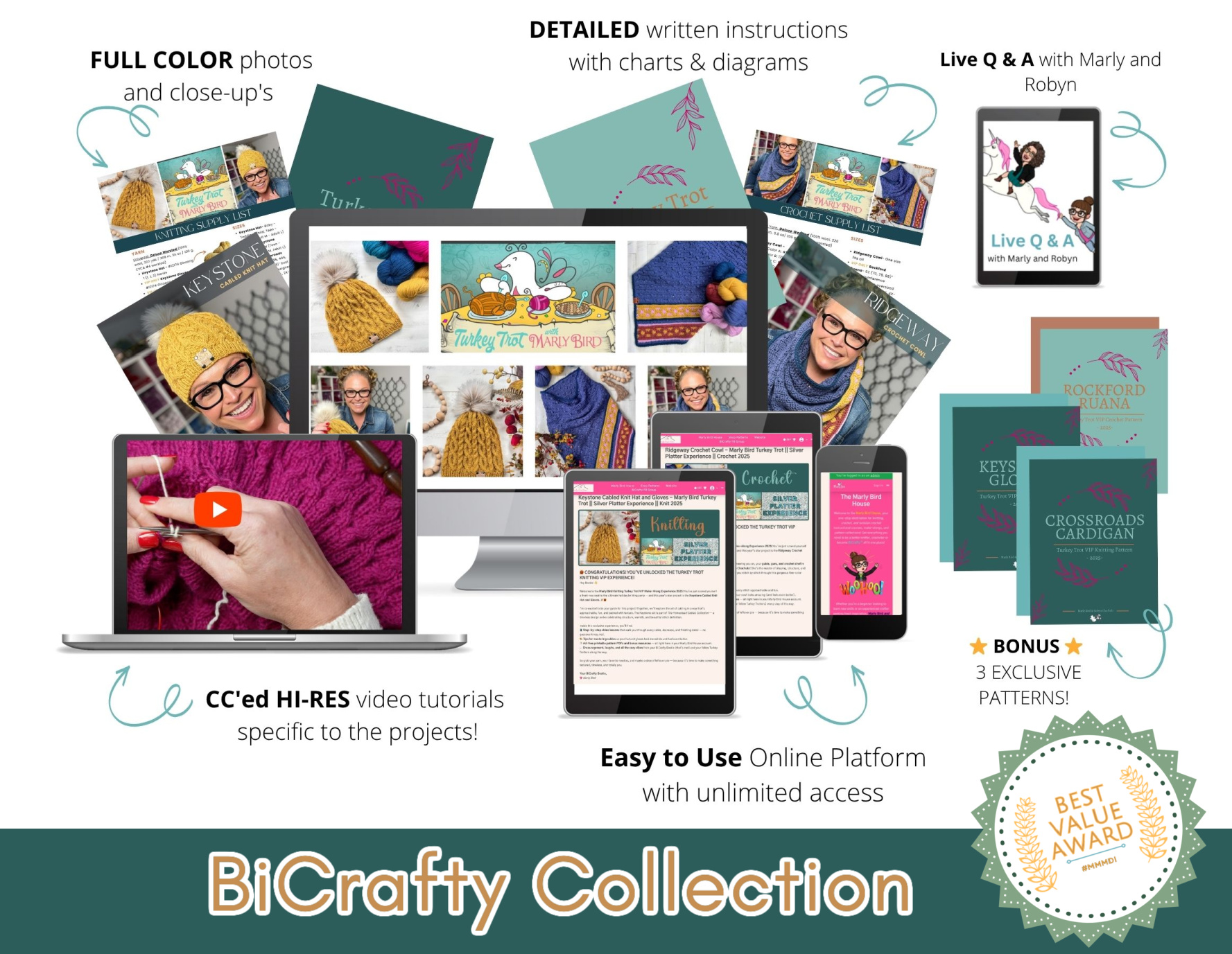 "As a BiCrafty fiber artist, the guided video lessons are invaluable to me as I continue to expand my knowledge and experience in knitting, crochet."